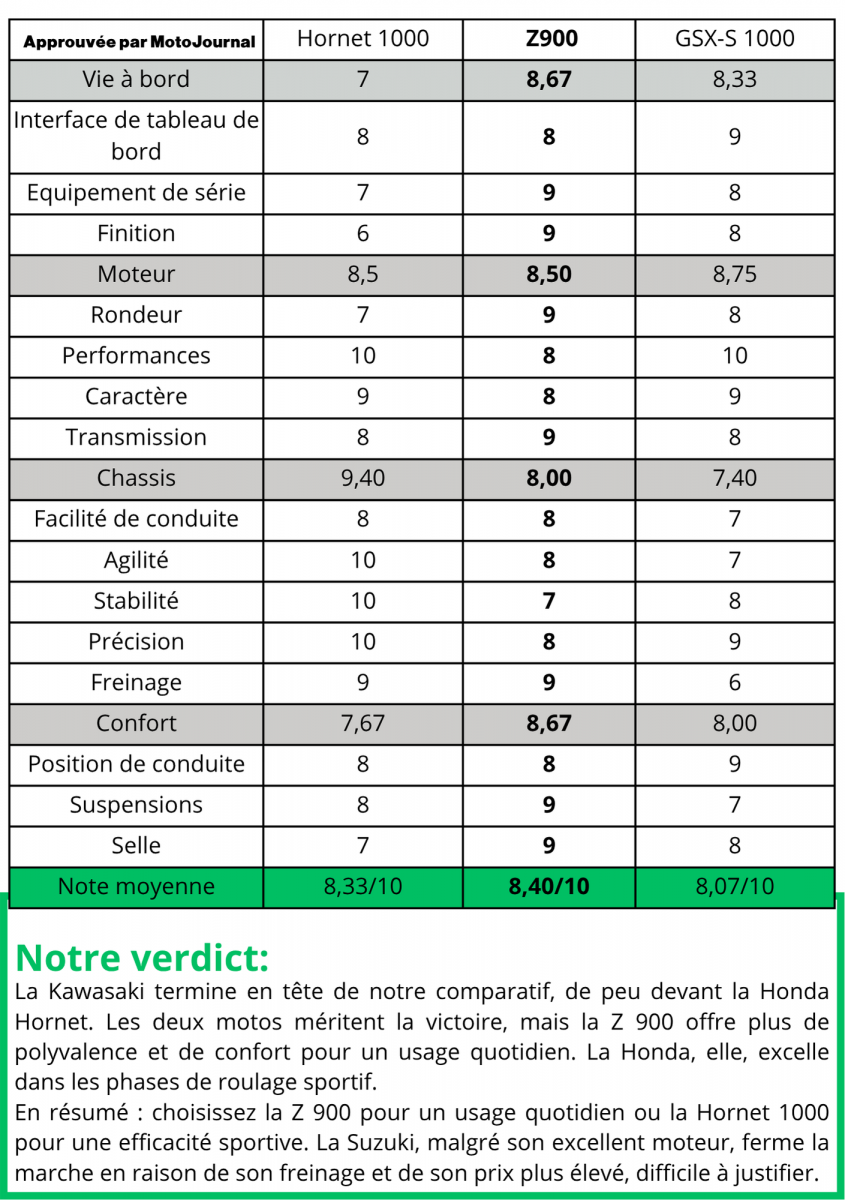 Côté technologie, la Z900 2025 intègre un nouvel écran TFT couleur, offrant une connectivité améliorée et des informations claires. Un shifter up & down est désormais de série sur certaines versions, garantissant des changements de rapports fluides et rapides. Les coloris disponibles, comme le rouge, le noir et le vert, soulignent son caractère sportif et moderne.